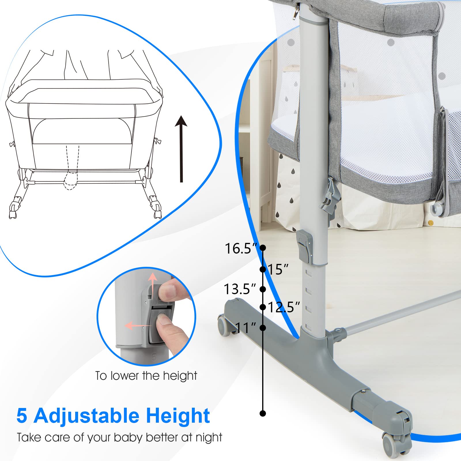 - 💖DESIGN 3-EN-1 : Grâce à sa conception polyvalente, ce lit cododo se transforme en berceau à bascule, berceau indépendant ou lit d'appoint pour s'adapter à chaque situation. Les points de connexion renforcés facilitent le montage et l'inclinaison réglable aide à prévenir les reflux.