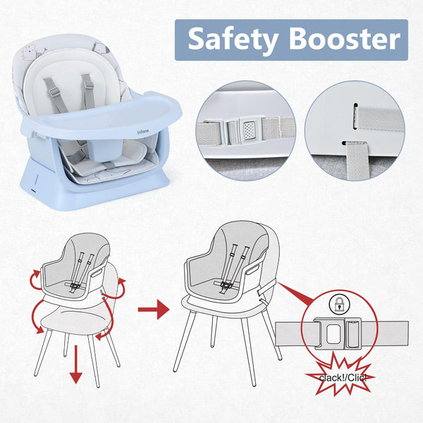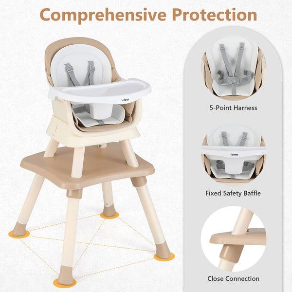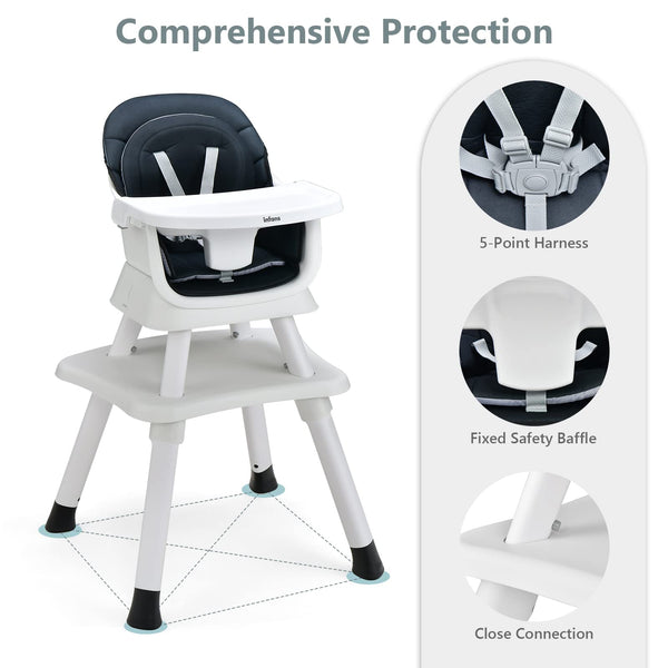 • 🍭Design convertible 8 en 1 : La chaise haute multifonction propose plusieurs configurations : chaise haute traditionnelle, chaise d’alimentation, rehausseur pour tout-petit, table et chaise d’enfant, table d’étude, tabouret simple, chaise pour tout-petit, table de construction, mini chaise de repas. Âge recommandé : 6-36 mois. Charge maximale : 55 lb.