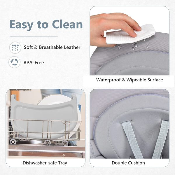 • 🍭Plateau amovible et réglable : Le plateau offre 3 positions pour adapter l’espace lorsque bébé grandit. Fabriqué en PP alimentaire sûr et résistant.