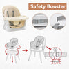 La chaise haute multifonction offre plusieurs configurations : chaise haute traditionnelle, chaise d’alimentation, rehausseur pour tout-petit, table et chaise pour enfant, table d’étude, tabouret simple. Pour éviter que bébé ne tombe, elle est équipée d’un harnais réglable 5 points avec protège-épaules et d’un entre-jambe fixe. De plus, la structure pyramidale stable avec patins antidérapants renforce la stabilité.