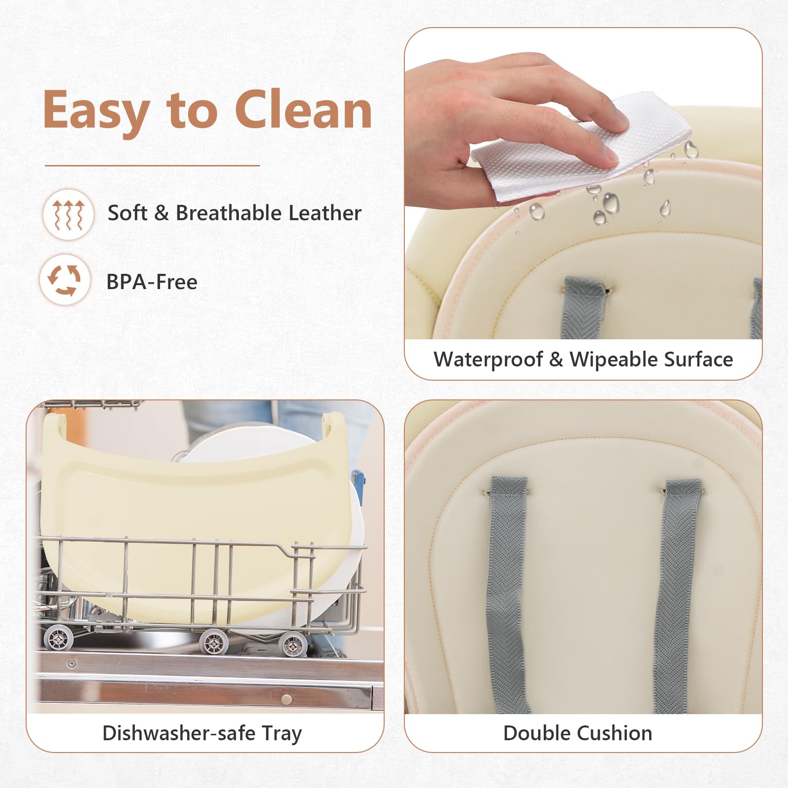 🍭Plateau amovible et réglable : Le plateau offre 3 positions pour adapter l’espace lorsque bébé grandit. Fabriqué en PP alimentaire sûr et résistant.