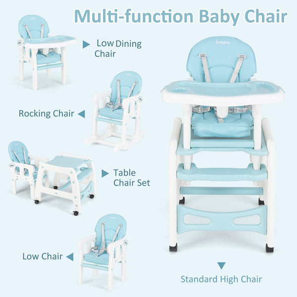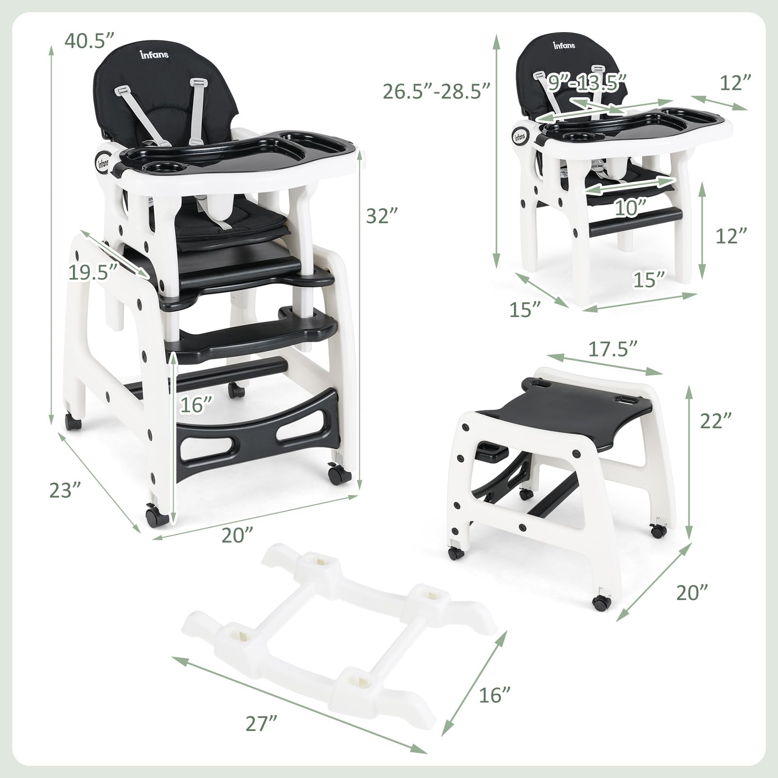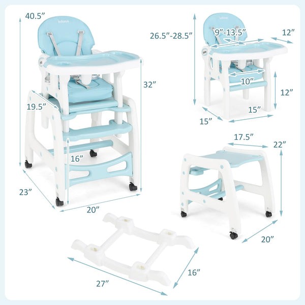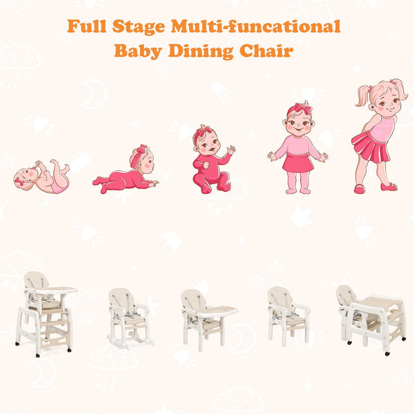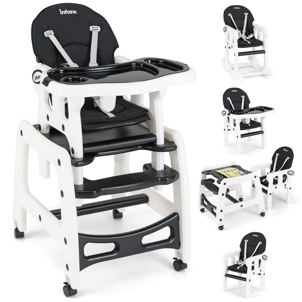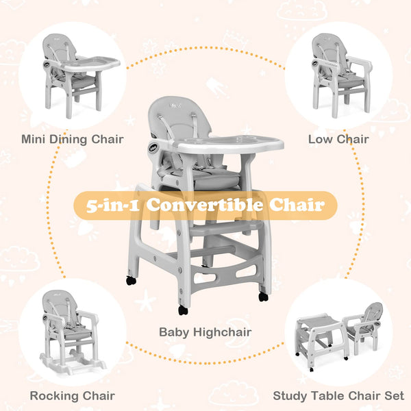 Chaise haute évolutive 5-en-1 pour bébé, ensemble chaise/table convertible, fonction bascule, siège multifonction avec roues universelles verrouillables
