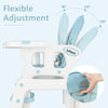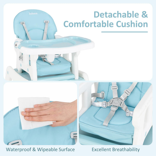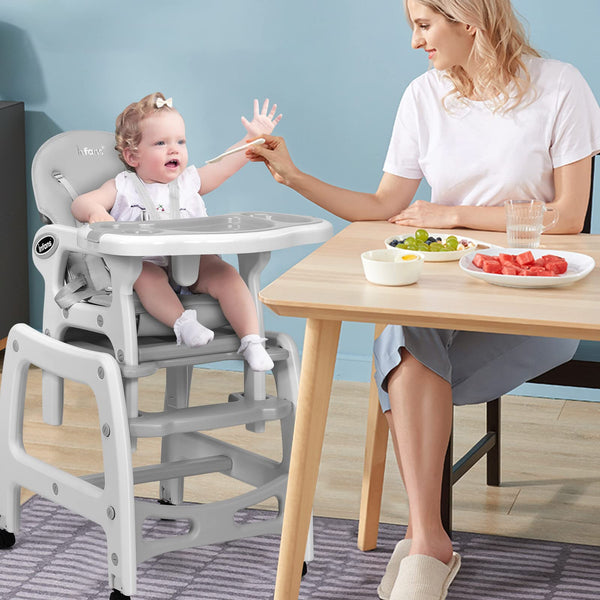 Cette chaise haute multifonction est idéale pour les enfants de 6 mois à 8 ans. Pensée pour s’adapter à chaque étape, elle se transforme facilement en table et chaise. La table sert de bureau ou de table à manger solide, tandis que la chaise devient chaise de repas, chaise à bascule ou siège pour tout-petit. Les plateaux d’alimentation sont réglables sur 3 positions et comportent deux niveaux : le premier pour les repas, le second pour le jeu. Le dossier s’incline sur 3 positions pour manger, nourrir ou se relaxer. Le coussin rembourré, confortable et amovible, se nettoie en un clin d’œil. Le harnais de sécurité à 5 points garantit la protection de bébé. Les 4 roues pivotantes, verrouillables, permettent de déplacer la chaise facilement. Cette chaise haute évolutive deviendra un compagnon indispensable dans la croissance de votre enfant.