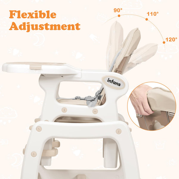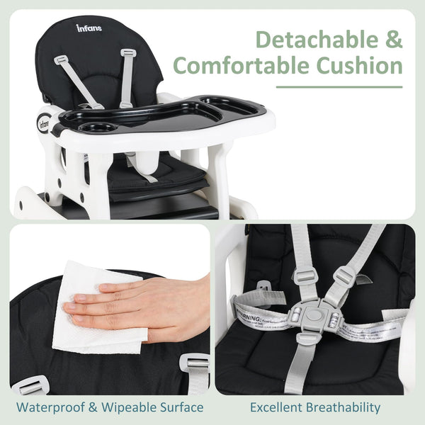 - ❤️CHAISSE HAUTE BÉBÉ 5-EN-1 CONVERTIBLE : Ce mobilier pour bébé est multifonction ; il se transforme non seulement en chaise haute, mais aussi en chaise à bascule ou en ensemble table & chaise. Sa conception permet un passage rapide d’un mode à l’autre. La table devient un bureau ou une table à manger robuste, tandis que la chaise sert de chaise de repas, de chaise à bascule ou de siège pour tout-petit. Son cadre polyvalent convient de 6 mois à 8 ans.