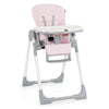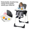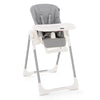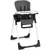 Chaise haute réglable : dossier à 5 positions, repose-pieds à 3 positions et longueur en 3 niveaux, plateau amovible avec 3 positions.