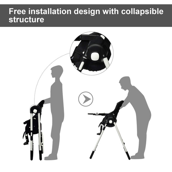 Chaise haute pliable pour bébés et tout-petits avec dossier, repose-pieds et hauteur d’assise réglables
