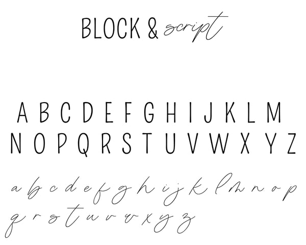 **Veuillez vérifier attentivement l’orthographe du prénom ! - La police block est EN MAJUSCULES, les deux polices script seront en minuscules. Le produit sera réalisé exactement comme sur la photo.**