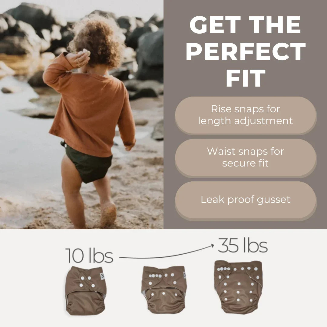 Découvrez ce lot de 15 couches lavables élégantes, ultra-absorbantes, écologiques et réglables en suédine avec doublure TPU et inserts hybrides bambou/microfibre, accompagné d’un sac humide/sec pratique. Chaque couche est dotée de plusieurs boutons-pression faciles à ajuster afin d’offrir la taille idéale à votre enfant. Le tableau inclus, clair et simple à lire, facilite les réglages et les couches évoluent avec votre enfant de 10 à 35 lb (environ 4,5 à 16 kg).
