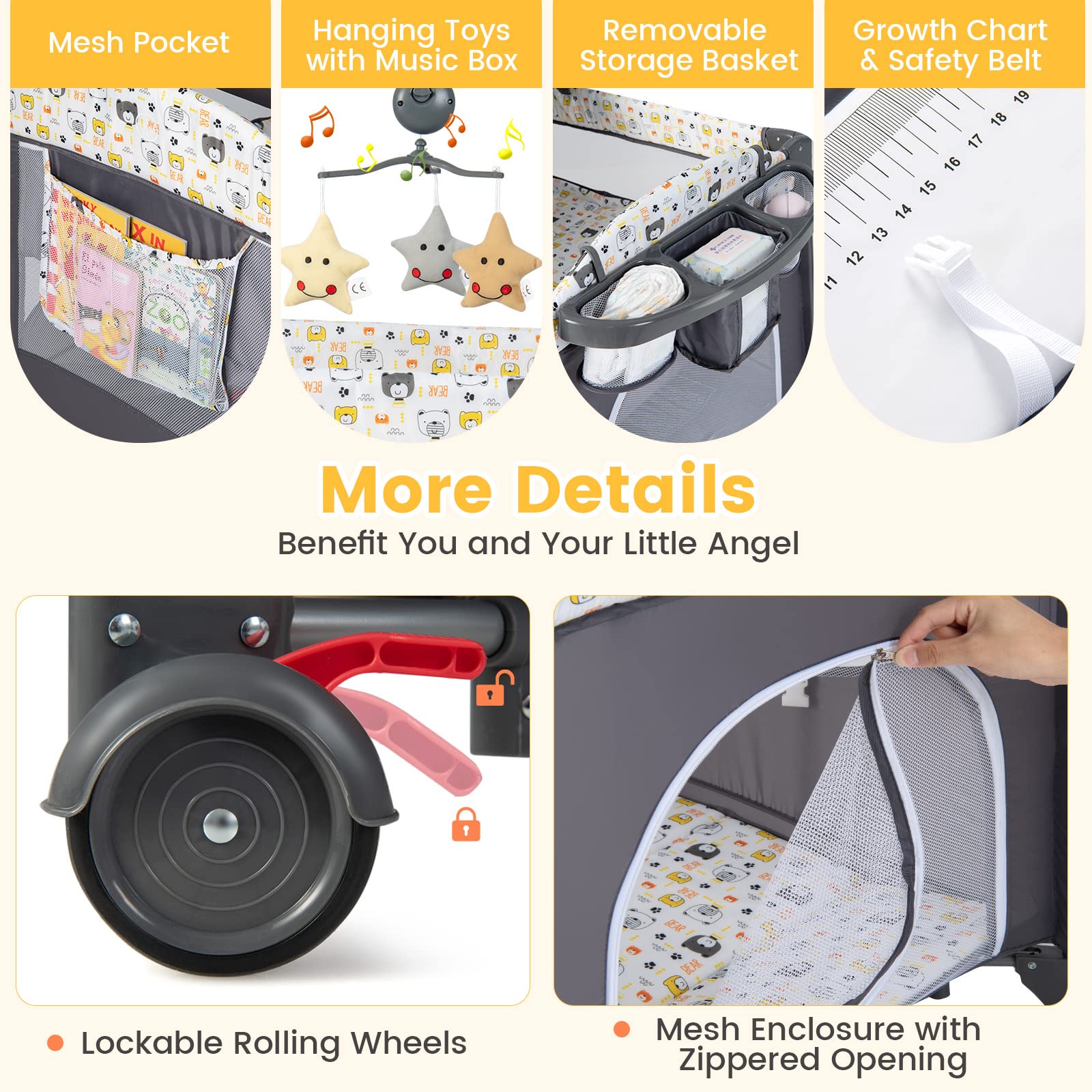 Parc pliable 5-en-1 pour bébé, lit de chevet avec berceau, table à langer, berceau pliable, aire de jeux portable