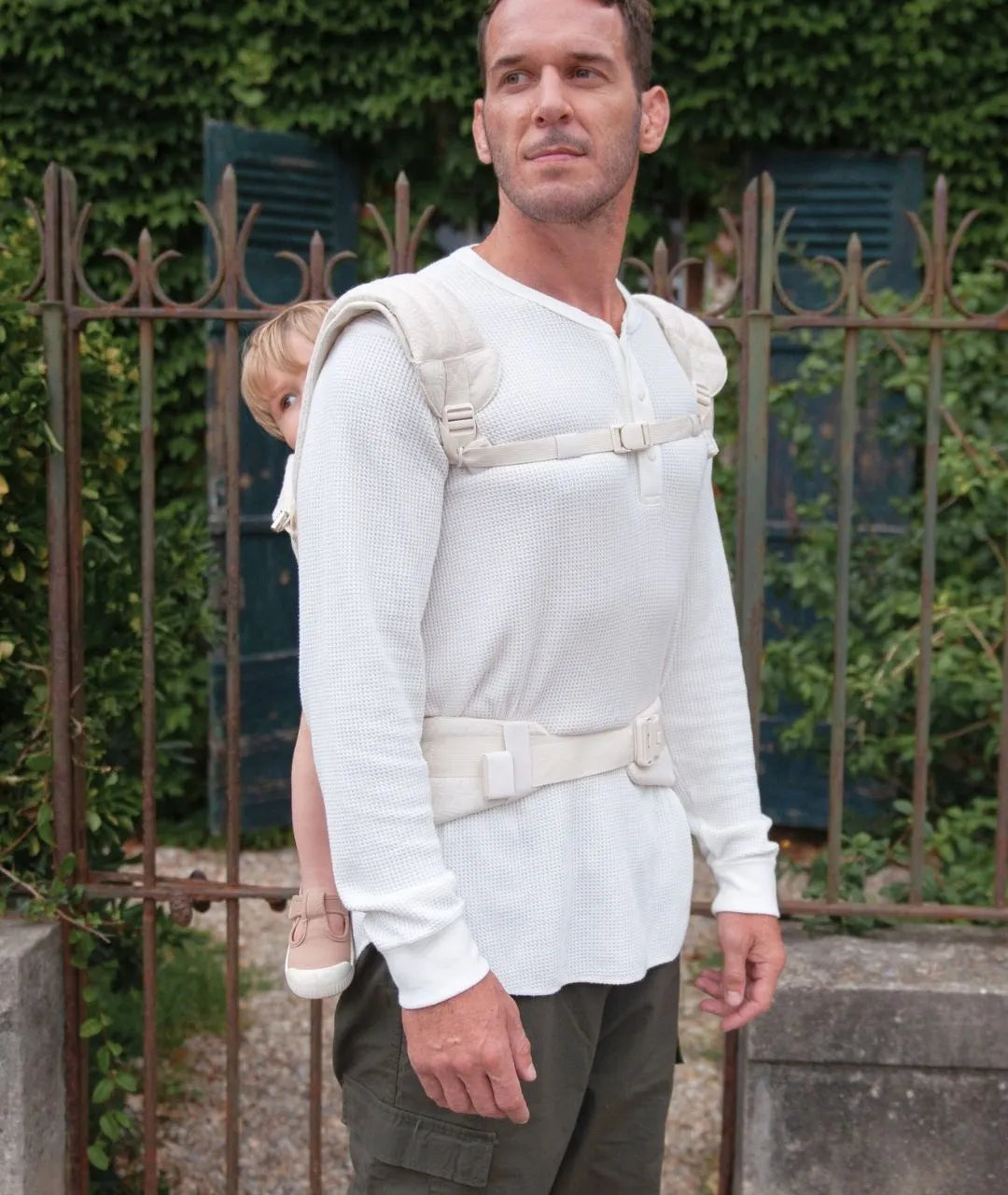 - Bretelles matelassées offrant un confort absolu au porteur, avec des voltes déployables sur les épaules pour répartir le poids de manière équilibrée en position ventrale.