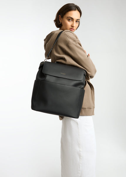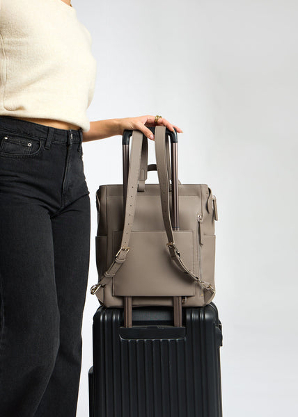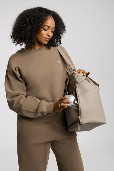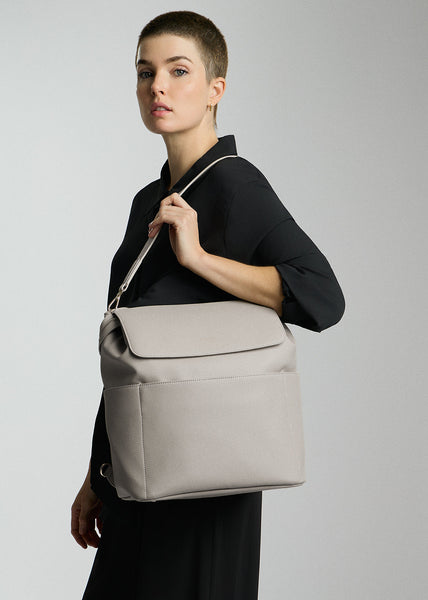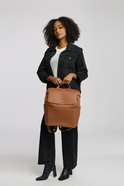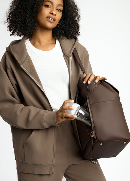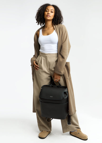 Kinney est le plus petit de nos sacs grand format, mais ne vous fiez pas à sa taille. Ses poches internes signature (tellement de poches !) rendent le rangement intuitif et facile. Son rabat magnétique permet de le fermer d’un simple geste, sans se soucier des fermetures éclair. Adaptable à toutes les étapes de la maternité, des sorties avec un nouveau-né ou plusieurs enfants aux voyages en avion avec un ordinateur portable, il se transforme grâce aux bretelles de sac à dos et à la bandoulière fournie, et se nettoie facilement grâce à notre similicuir microfibre haut de gamme. Kinney est l’alliée idéale quand vous voulez tout : une sophistication décontractée obtenue en cinq minutes. Malgré sa polyvalence, Kinney reste humble et loyale, conçue pour garder la lumière sur vous !