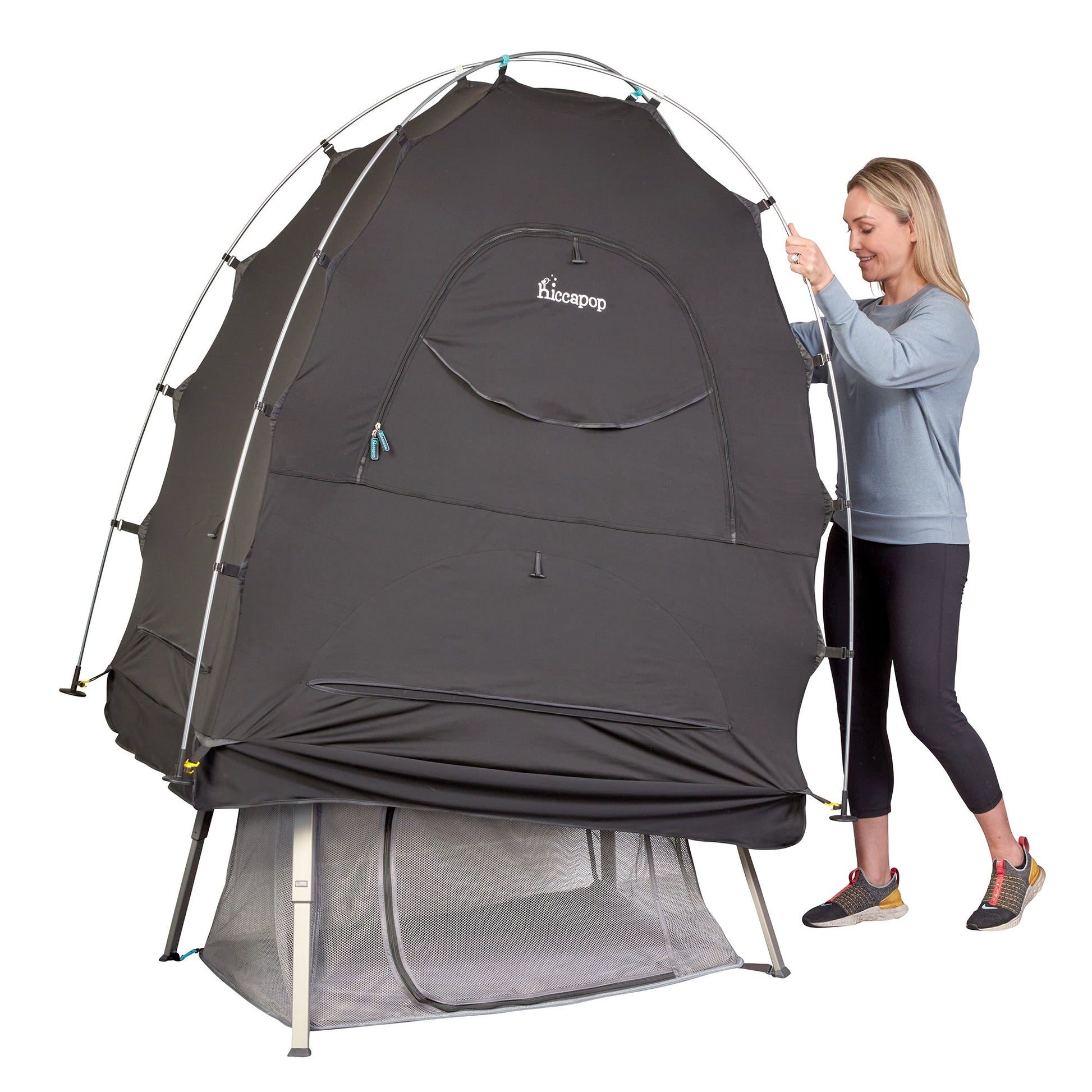 - Espace de sommeil obscur avec ventilation optimisée : le tissu respirant bloque plus de 90 % de la lumière. Six ouvertures d'aération et une poche pour ventilateur (non fourni) garantissent une circulation d'air maximale.